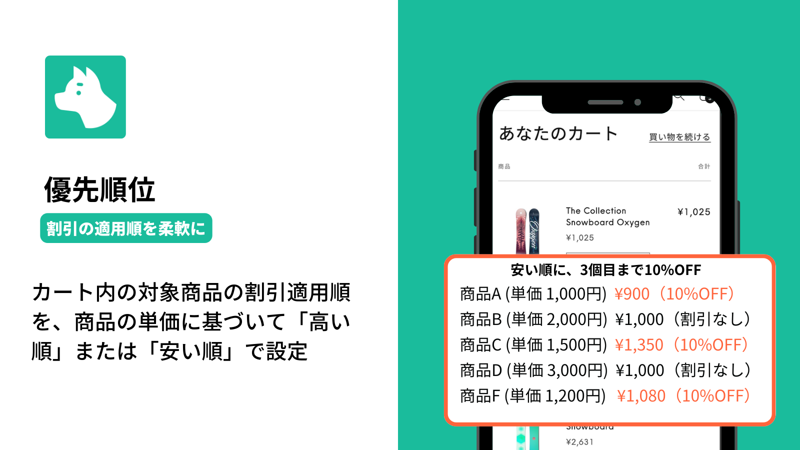 In Product discounts, you can specify the application range for eligible items in the cart by defining "from which item to which item" the discount applies. For example, you can easily implement discount promotions such as "half price from the 2nd item."