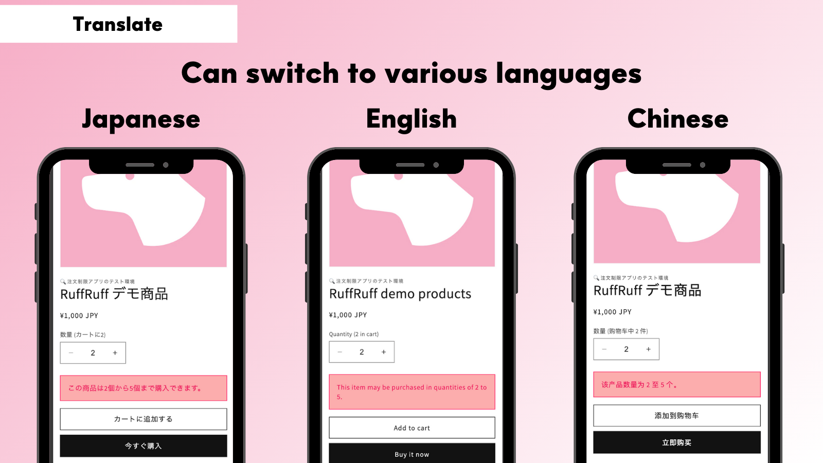 All text data in the app, including product messages and alert messages, can be translated. This allows for flexible language switching to match user preferences during cross-border sales.