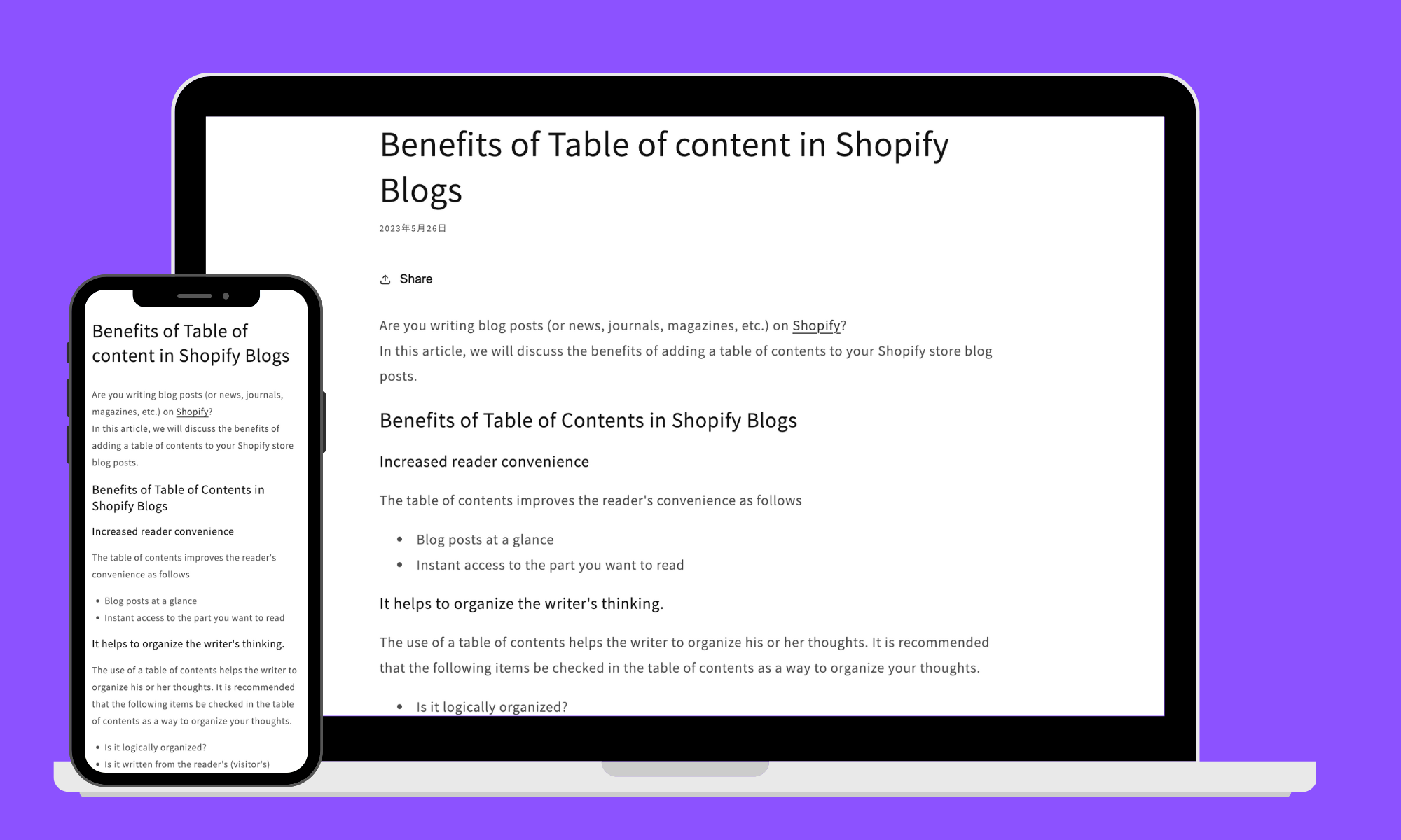 Using this app, you can automatically generate a table of contents for content such as blog posts.