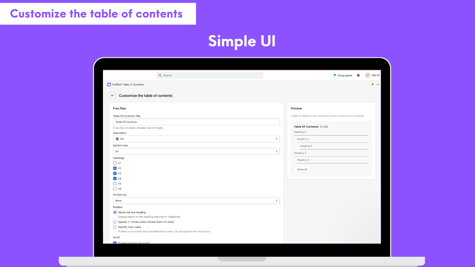 You can freely customize the design of the table of contents. The customization page has a simple UI for intuitive operation.