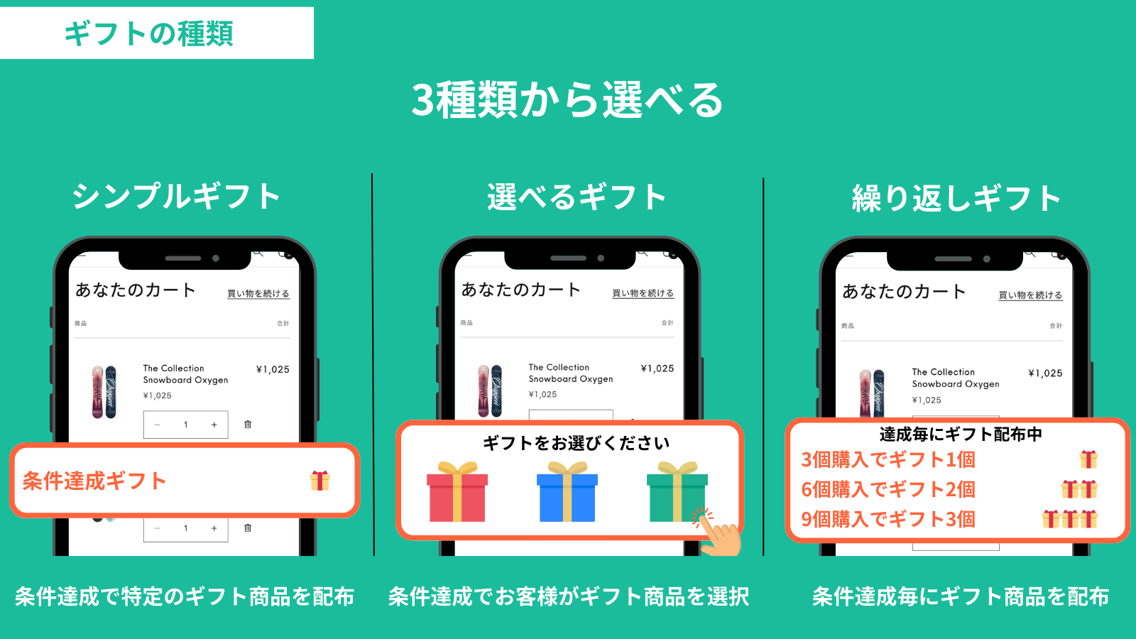 ギフトを下記の3種類から選択できます。